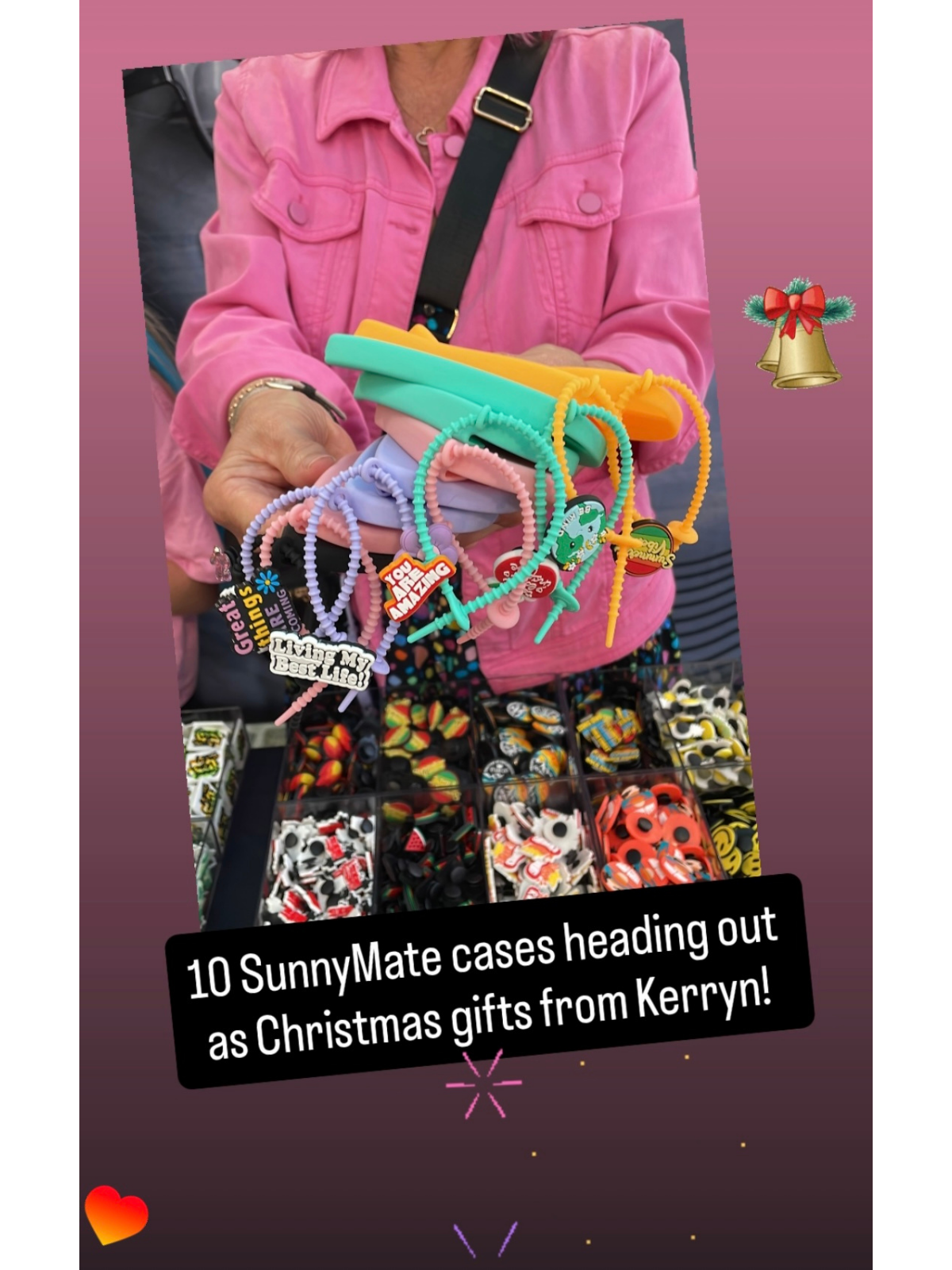 SunnyCharms attach using a SunnyLoop and clip onto your SunnyStrap, which connects to your case.